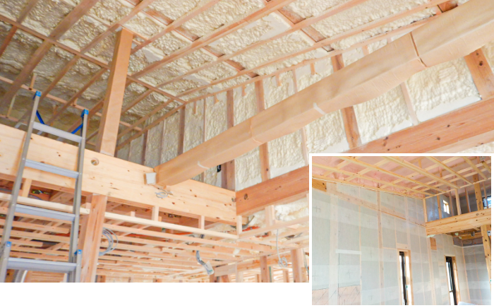 プラスチック系断熱材のため断熱性能が高いのが特徴であり、現場発泡なので隙間がなく施工できるため、きちんとした断熱性能を発揮する可能性が高く、密着することで気密性も高くなります。